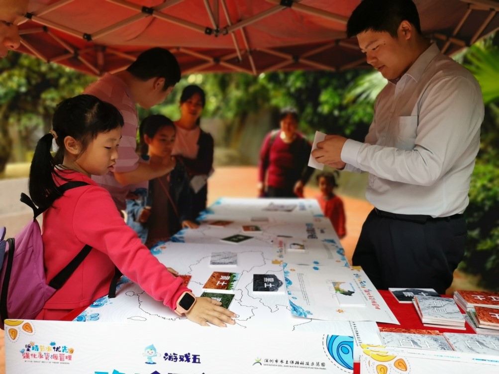 活动分为挑战活动区和参与活动区,分别在园区透水广场、四米路观景平台、径流小区、土厚园设立答题和游戏互动点,参与者只要答出问题并集齐5块大小形状各异的“盲拼卡”拼出一幅完整的全国水土保持区划图,即可赢取奖品。