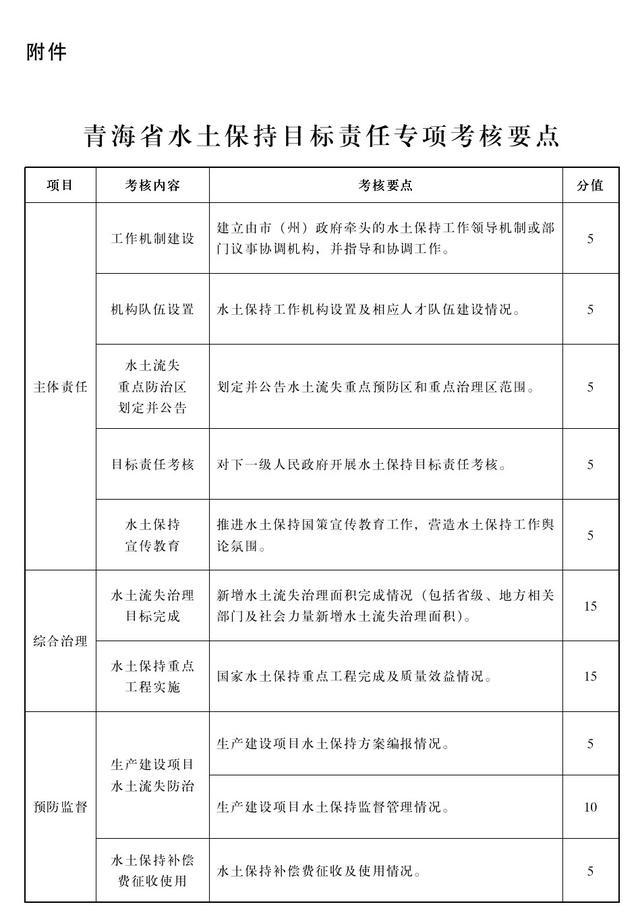 青海新闻网·青海新闻客户端讯 (记者 樊永涛 报道) 4月30日,记者从省水利厅获悉,近日,省政府办公厅印发了《青海省水土保持目标责任专项考核办法(试行)》的通知(以下简称《办法》)。主要考核全省水土保持主体责任落实、综合治理、预防监督、监测与信息化等。